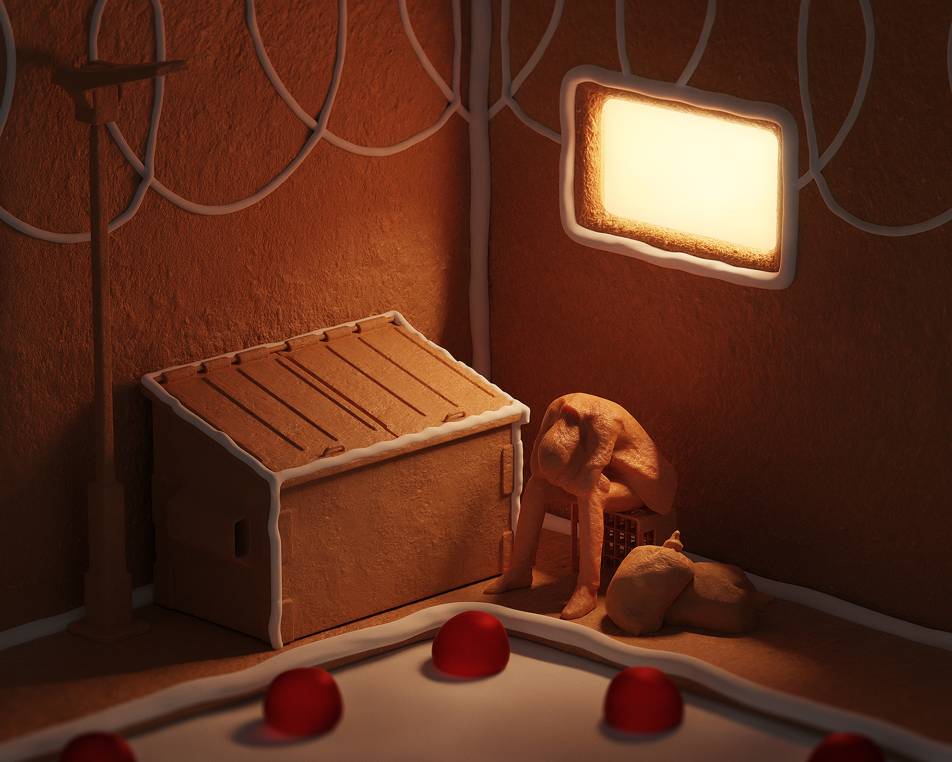 There are over 200,000 people experiencing homelessness in the UK. Don't let them fade into the background this Christmas. A series of CGI images.