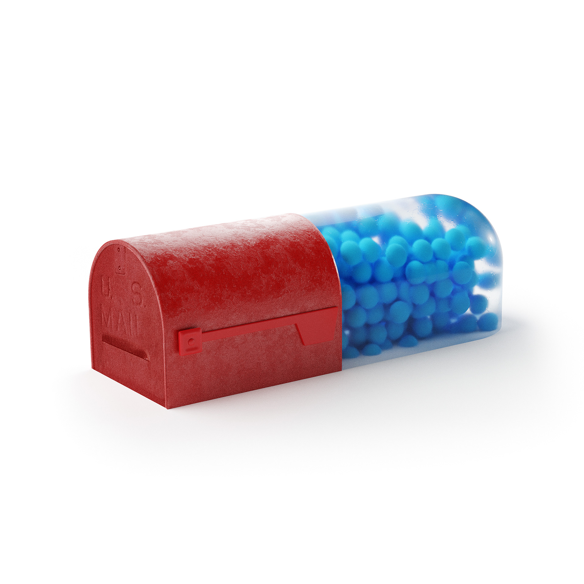 A CGI series for a prescription delivery app. 3 types of mailboxes represented as medicines.